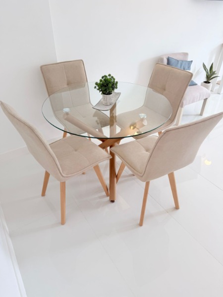 - Lavarropas Dream- Cocina Escorial con horno- Heladera con frezzer - Microondas - Mesa con 4 sillas- Matera- Sommier de 2 plazas con mesa de luz y respaldo - Ropa de cama- Cortinas - Mesa de apoyo- TV 43 SMART HD- Iluminación - Decoración.